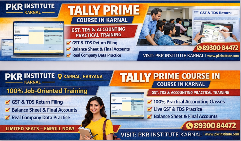 Welcome to PKR Institute Karnal – a trusted name for practical accounting and professional courses. Our Tally Prime course is specially designed to make you job-ready with complete hands-on training.